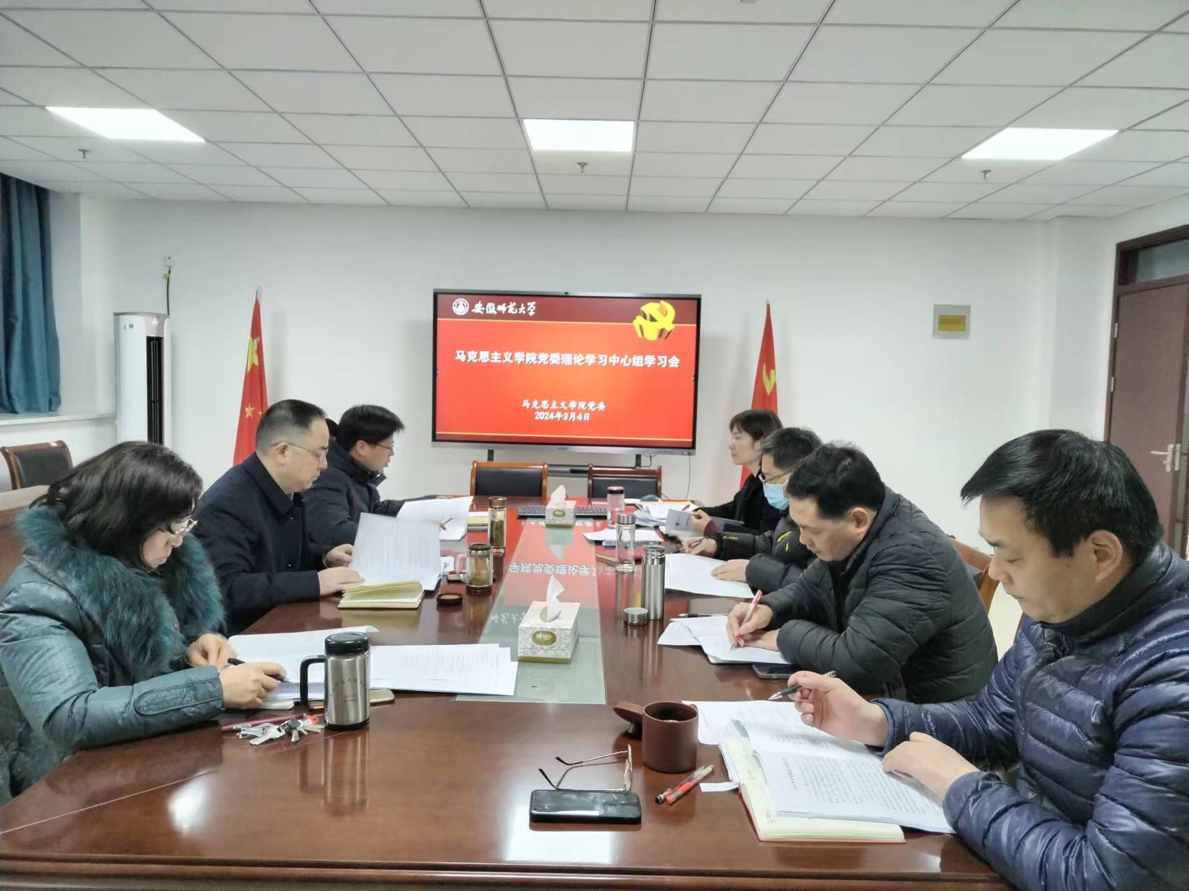 3月4日下午,马克思主义学院党委理论学习中心组集体学习会在文典楼G407会议室举行。学院党委全体成员参会,院党委书记严宏主持会议。