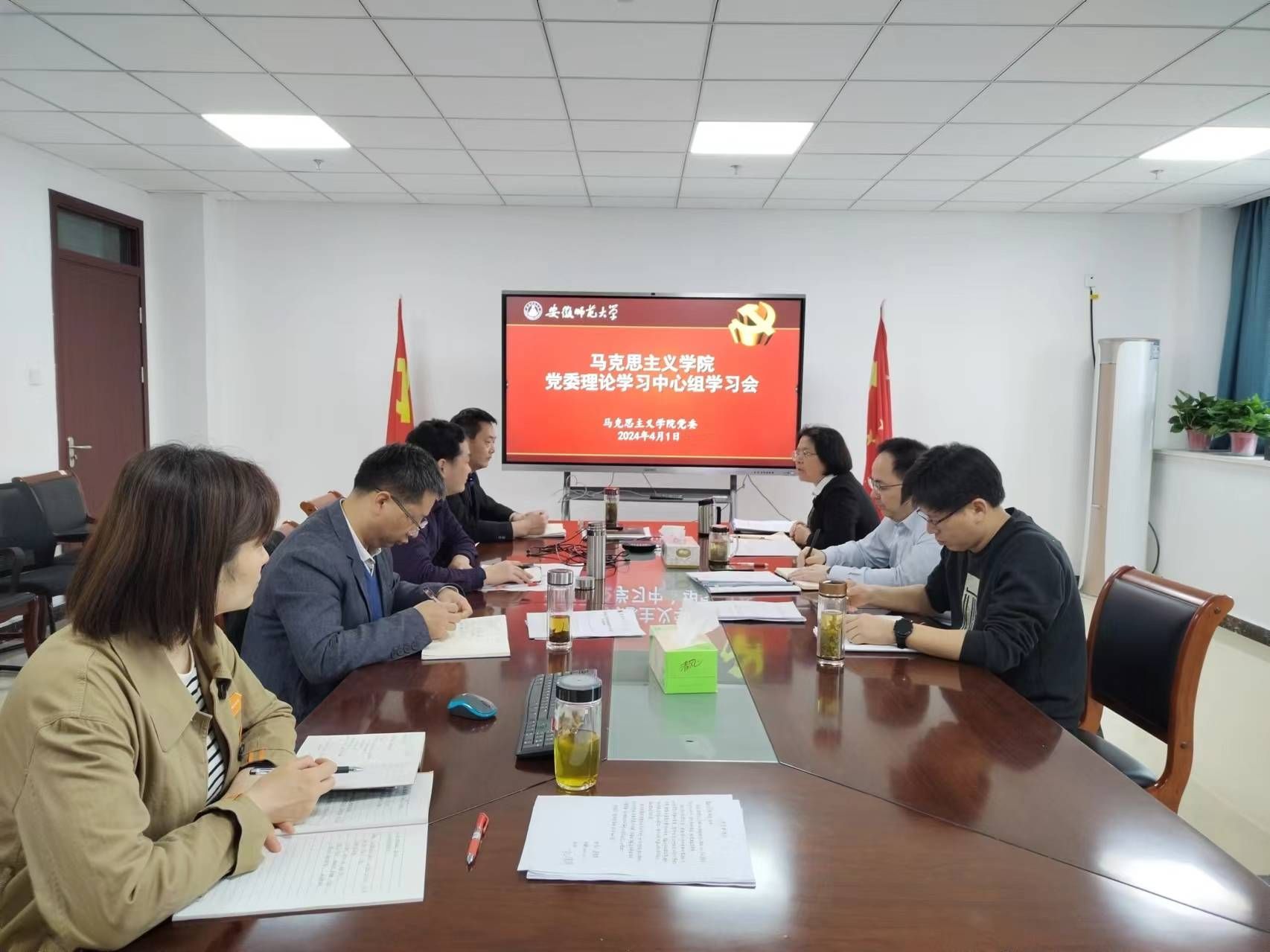 4月1日下午,马克思主义学院党委理论学习中心组集体学习会在G404会议室举行。学院党委领导班子全体成员参加会议,院党委书记严宏主持会议。