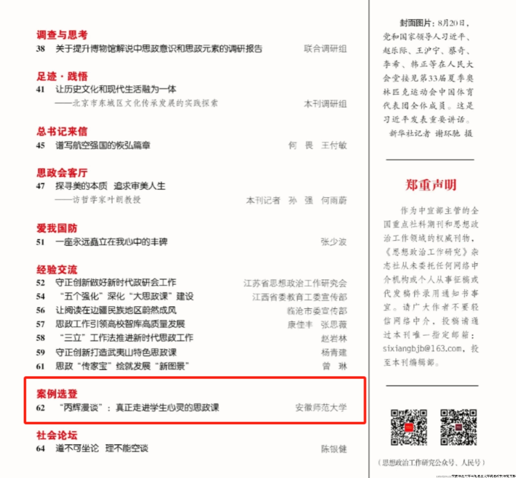 “丙辉漫谈”是由支部路丙辉老师领衔创办的品牌活动。该项品牌活动继入选“中国政研会2023年度基层思想政治工作优秀案例”后,再获《思想政治工作研究》2023年第9期的专项报道。“丙辉漫谈”是支部创设的在马育马重要成果,作为师生思想交流平台,注重“面对面”的现场漫谈、“键对键”的网络互动和“肩并肩”的实践锻炼三者有机统一。经过30余年的实践探索,形成了“现场版”“网络版”“实践版”三种模式。