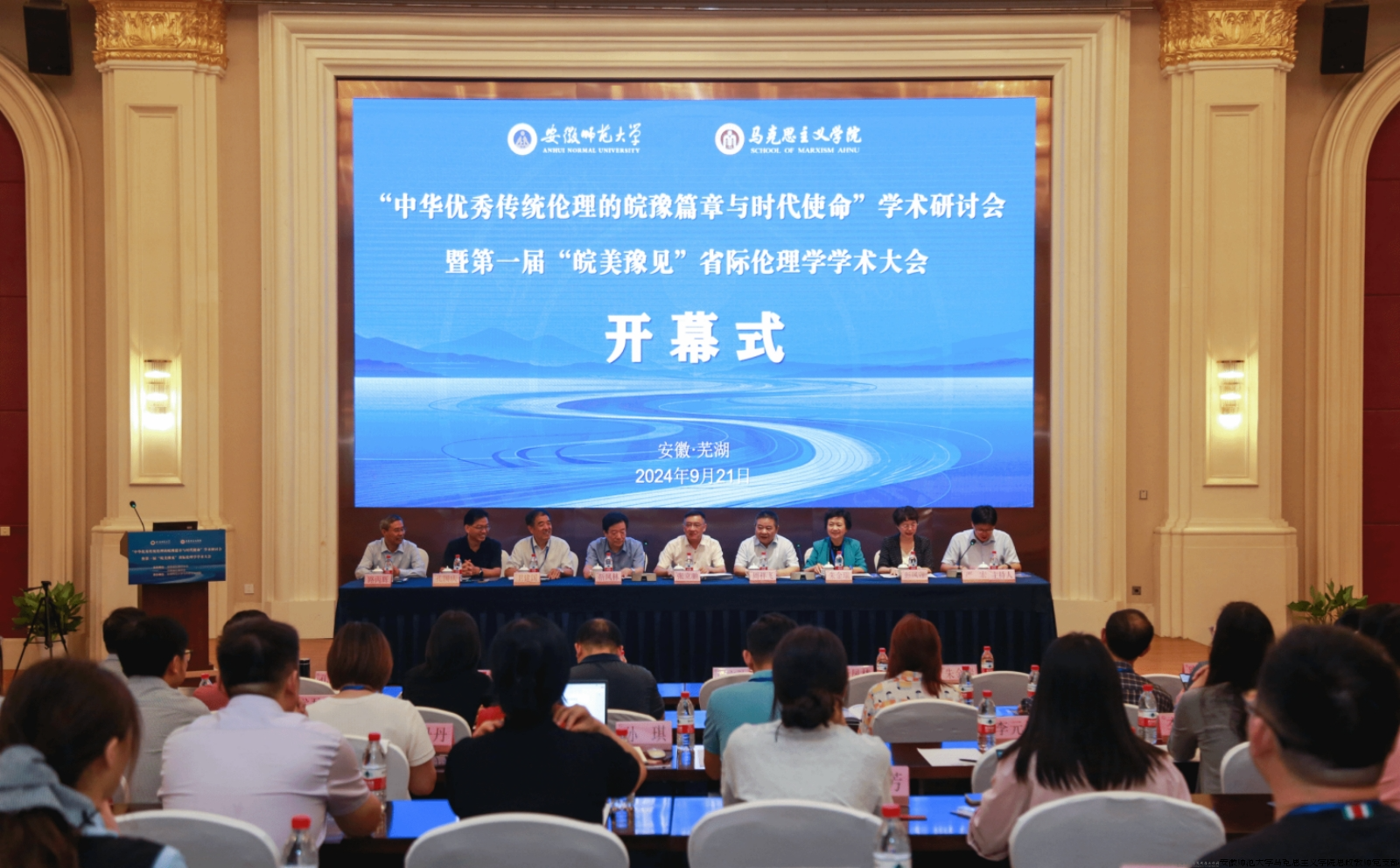 为深入学习贯彻党的二十届三中全会精神,用习近平新时代中国特色社会主义思想铸魂育人,挖掘弘扬安徽河南两省优秀传统文化中的伦理资源,展现中国式现代化进程中皖豫伦理学人的使命担当,安徽河南两省伦理学会于2024年9月20-22号在安徽芜湖联合举办“中华优秀传统伦理的皖豫篇章与时代使命”学术研讨会暨第一届“皖美豫见”省际伦理学学术大会。会议由安徽省伦理学学会和河南省伦理学会联合主办,安徽师范大学马克思主义学院承办。来自中央党校、武汉大学、东北师范大学、山西师范大学、曲阜师范大学、南京航空航天大学、郑州大学、河南财经政法大学、河南理工大学、河南农业大学、合肥工业大学、安徽中医药大学、安徽工程大学、安庆师范大学、安徽师范大学等30多家高校和科研院所的120多位专家学者和博硕研究生,参加了会议。大会共分开幕式、主旨发言、党的二十届三中全会精神宣讲、自由发言、闭幕式等五个主要阶段。