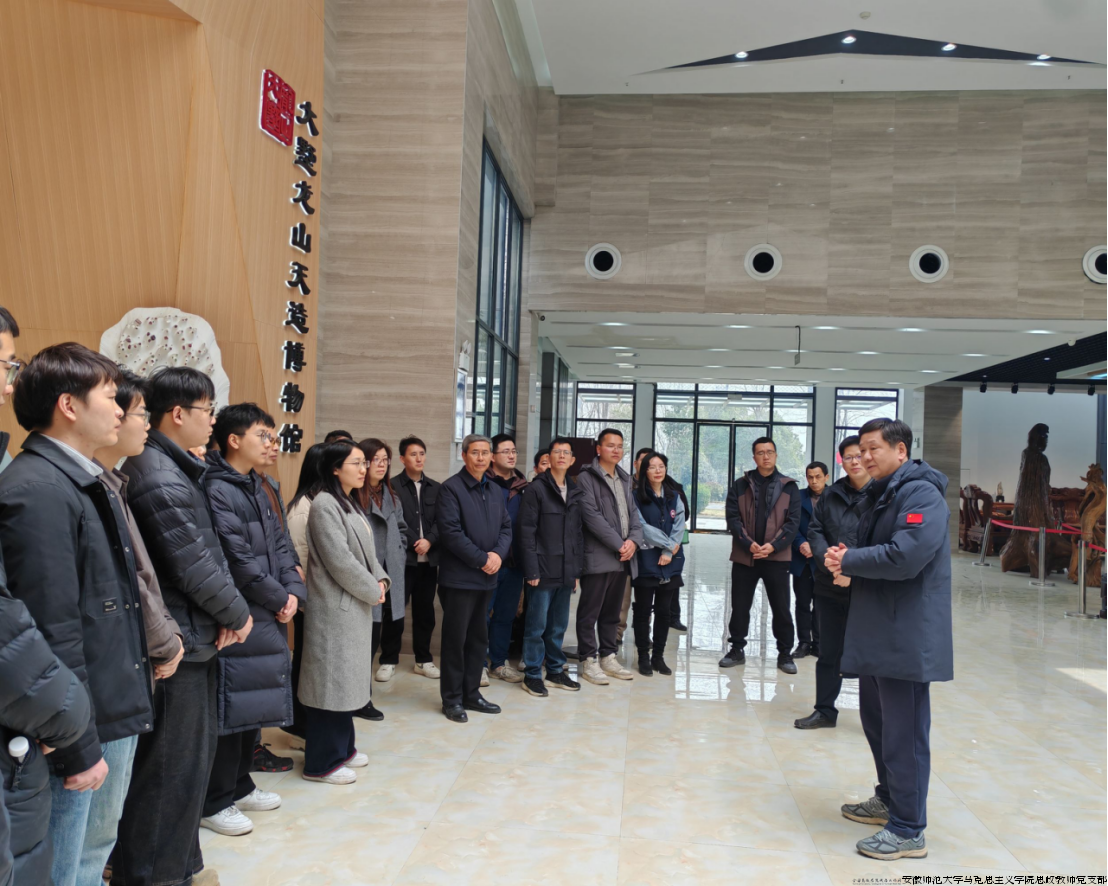 3月9日上午,思政教师党支部携手全椒县章辉社区党支部开展结对共建,组织安徽师范大学德育研究会同学前往当地的天造博物馆开展“行走的思政课”。一行师生、社区工作人员代表三十余人参观了馆藏奇石标本与地质遗迹,大家从地球46亿年的演化历程感受到人与自然生命共同体理念,生态文明的宏大叙事转化为具象生动的教学案例。