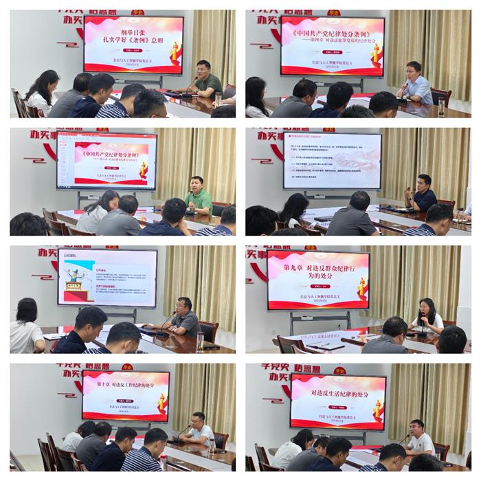 信息与人工智能学院党总支将持续推动党纪学习教育走深走实,教育引导广大党员做到政治立场坚定、对党忠诚老实、清正廉洁自律、道德品行过硬,以严的纪律和规矩要求自我,以实的工作作风不断推动事业发展。