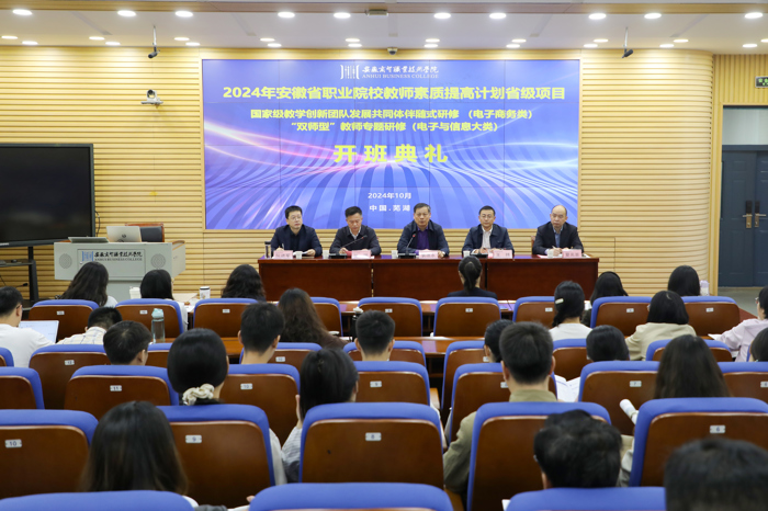 10月15日,由我校承办的2024年安徽省高职院校教师素质提高计划省级配套项目(第二期)培训班开班典礼在录播室举行。安徽省高等学校师资培训中心常务副主任袁德水、党委副书记王炜、电子商务学院院长夏名首、信息与人工智能学院院长阮进军、班主任代表及50余名培训学员参加典礼。典礼由组织人事处常务副处长张强主持。