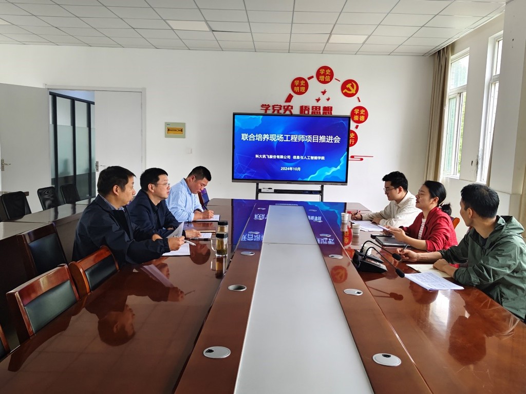 为全面落实教育部办公厅第一批现场工程师专项培养计划的相关文件精神,加速推进我校与科大讯飞股份有限公司联合申报的电子信息专业类现场工程师联合培养项目,10月16日上午,校企双方在我院会议室,召开专项推进工作会议。