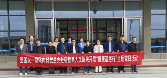 为认真贯彻落实习近平总书记关于卫生健康的重要指示精神,让优质医疗资源下沉,为基层百姓健康服务,3月30日,内科党总支在医务处院际医疗部的大力支持下,组织多学科专家赴宿松人民医院开展“ 健康基层行”主题党日活动,常务副院长李家斌参加活动。