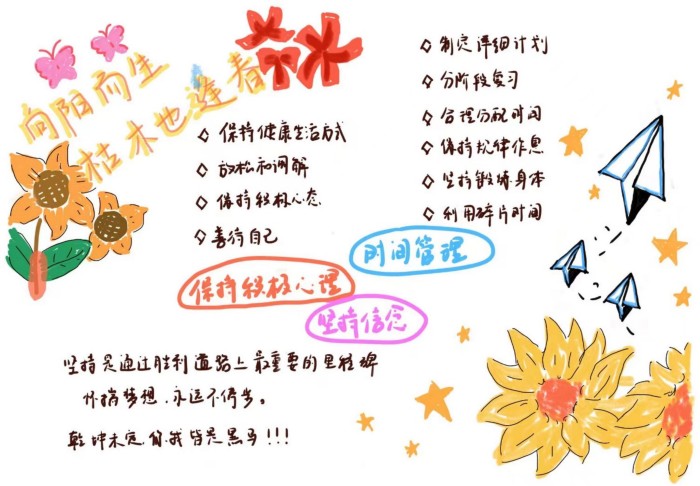 研途心晴,创意无限。支部学生围绕备战考研期间的心理健康、学习方法、时间管理、梦想与坚持等主题进行海报创作,在创作过程中沉淀心灵,稳定情绪,正确释放压力,缓解紧张情绪,以积极向上的心态面对备考过程中的种种挑战。