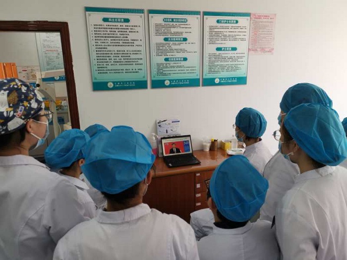 今天上午10时,纪念中国人民志愿军抗美援朝出国作战70周年大会在北京人民大会堂隆重举行,支部教职医护员工通过手机、电脑、大屏幕等多种方式收看了直播。