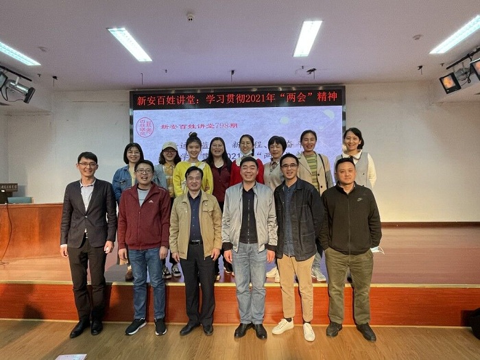 讲座后进行了简要的交流和沟通,并留下珍贵的合影。大家表示在新安百姓讲座中收获良多,要在中华民族伟大复兴战略全局和世界百年未有之大变局的两个大局中,坚定四个自信,增强四个意识,不忘初心,怀抱热忱,将更加饱满的热情投入到自己的工作中,为美好的未来而努力奋斗!