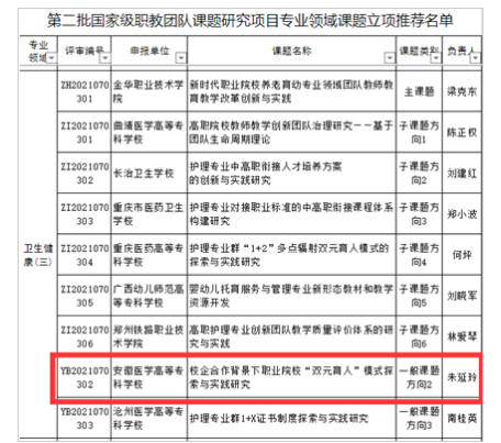 据悉,我校护理学院获得第二批国家级职业教育教师教学创新团队课题立项。我校所在的协作体由12个国家级职业教育教师教学创新团队建设单位组成,共同申报1个重点课题、6个子课题和2个一般课题。前期经过团队负责人,校党委委员、副校长严继贵的宣传动员,统筹协调,团队教师积极申报课题,认真撰写课题,取得良好成效。