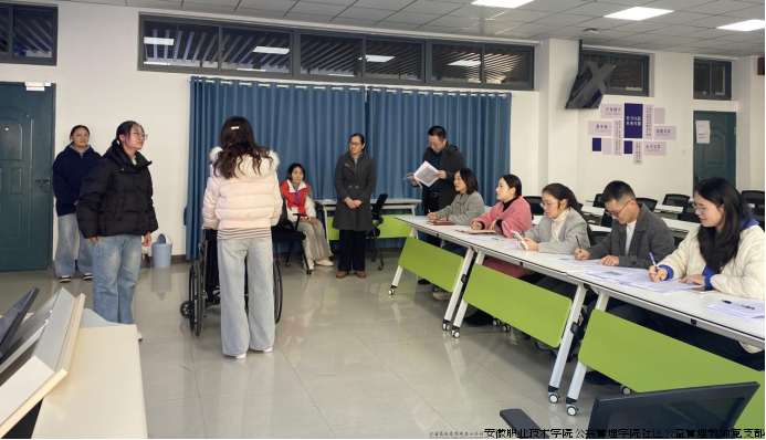 为深化公共管理与服务大类专业人才培养改革,搭建师生技能展示与交流平台,选拔省赛、国赛优秀后备力量,推动社区社会工作人才队伍建设,11月19日下午,安徽职业技术大学第一届社区服务实务技能竞赛顺利举行。本次竞赛由公共管理学院、马克思主义学院、文化与旅游学院联合举办,社区公益管理教师党支部全体教师参与此次活动。全校各专业在籍学生踊跃参赛,以专业实力诠释新时代大学生的社区服务担当。