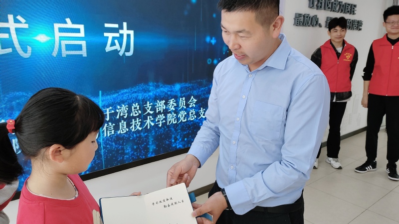 为进一步学习贯彻习近平文化思想,积极践行安职“六位一体”校园文化精神,计算机与信息技术学院电子通信学生党支部积极响应社区文化建设的号召,策划实施了“党建读书文化”进社区系列活动,电子通信学生党支部联合磨店社区于湾社居委共同开展“‘悦’读‘悦’有趣 ‘悦’享‘悦’精彩”主题活动。于湾党总支书记、主任孔芳芳,电子通信学生党支部书记陈洋以及计算机与信息技术学院学生代表、社区青少年参加。