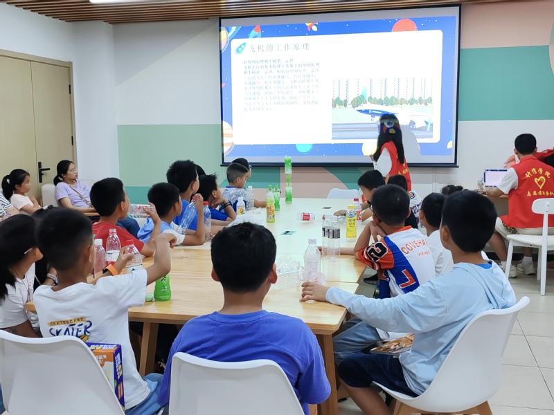 活动伊始,物联网2222班姚璋俊率先为青少年们深入浅出地阐述了飞机与火箭的基本原理,借助生动的语言和直观的图表,使青少年们对深奥的航空航天知识有了初步的认知。随后,软件2222班彭媛媛结合神州十八号飞船升空的视频资料,详细剖析了飞机起飞、航行、降落的全过程,以及火箭从发射至进入太空的各个环节,激发了青少年们对未知领域的浓厚兴趣和丰富想象。