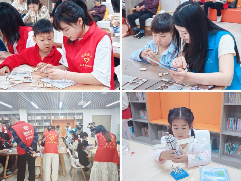 志愿者们结合专业所学,用通俗易懂的语言讲解了通信卫星工作原理,引导青少年们在动手组装北斗卫星模型过程中感知科技力量。“当看到孩子们举着卫星模型说长大后要当科学家时,我深刻体会到党建联建活动的价值。”通信2321班许超奇表示,两个支部发挥播音主持与电子信息技术的专业优势,将科学家精神具象化为可触可感的实践课堂,既提升了自身实践能力,也让科技报国的信念在青少年心中生根发芽。