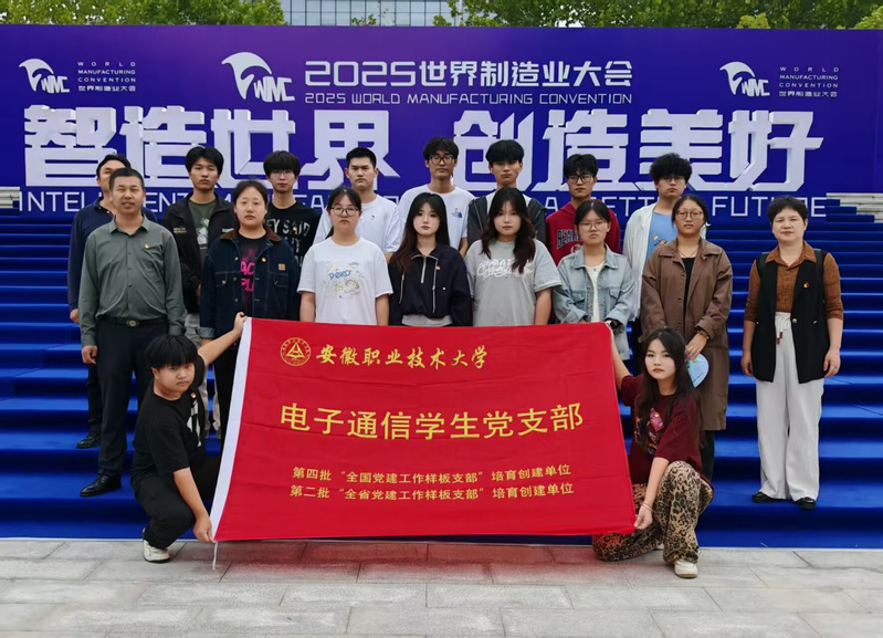 2025年9月20日,安徽职业技术大学计算机与信息技术学院电子通信学生党支部以主题党日活动为契机,组织党员及入党积极分子前往合肥滨湖会展中心,参观世界制造业大会。