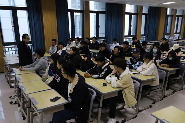 “《中华人民共和国网络安全法》是什么时候施行的?”会议伊始,江晋剑以此问题为引,从常见的网络不良现象、网络道德问题的危害、大学生网络道德失范的原因、提高道德自律的方法四部分阐述了网络行为规范的要求。他详细解释了网络弄虚作假、网络成瘾、侵犯他人隐私等网络问题危害的严重性,并倡导在场学生合理利用网络,认识到网络的双面性。