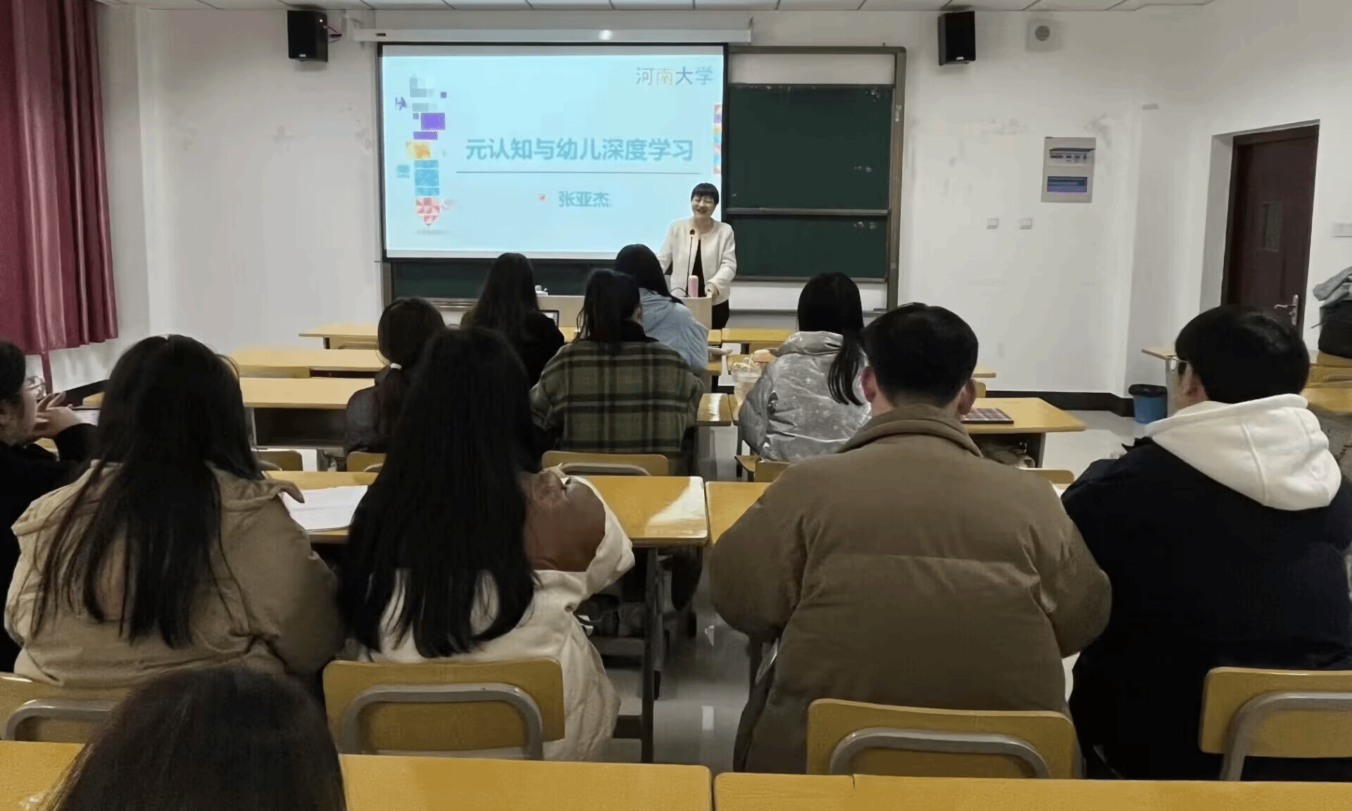 2月22日上午,河南大学教育学院学前教育系主任张亚杰副教授应邀在“红色园丁大讲坛”作报告,开展了题为“元认知与幼儿的深度学习”的学术交流会,教师教育学院谢红玉老师主持报告会,教师教育学院学前教育全体专业研究生及部分教师现场聆听。