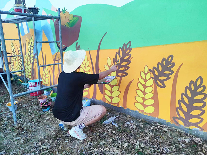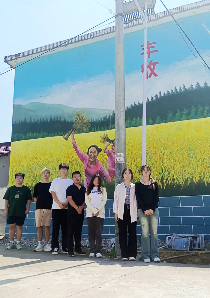 打底稿,调色,补色,描边……冒着炎炎烈日,团队10名志愿者在白色的墙体上认真绘制,一画就是几个小时。“我们这次绘画的内容较多,面积大、时间紧,所以大家很少休息。”第一次参加“三下乡”活动的队员吴昌龙回忆说,有村民看到他们刷墙够不到上面,会回家拿梯子和长杆过来,还有人从自家拿出水果、冰棍、矿泉水分给他们。