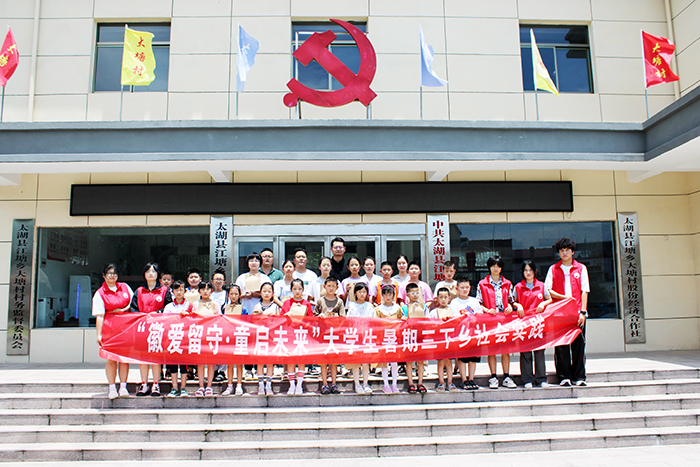 由江承桐老师带领的基层服务践行团围绕“徽爱留守 童启未来”主题,为大塘村留守儿童点亮文化艺术之光,同时传递志愿服务的温暖与力量。团队成员为村里留守的孩子们带来了一系列丰富多彩的活动,团队通过卫生安全教育、手工绘画、作业辅导、游戏和书写家信一系列活动,补充了留守儿童暑期在教育和情感需求。