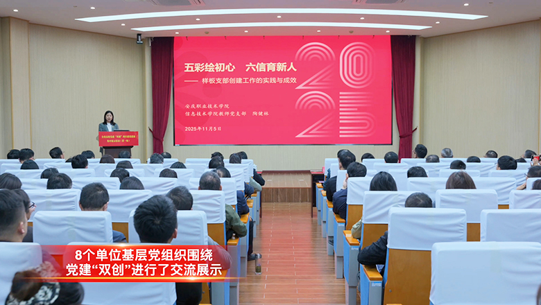 11月5日,全省高校党建“双创”项目建设进展集中展示活动(第一场)在安徽工程大学举行。安庆职业技术学院信息技术学院教师党支部作为第四批全国党建工作样板支部培育创建单位,代表高职院校在会上作经验交流。