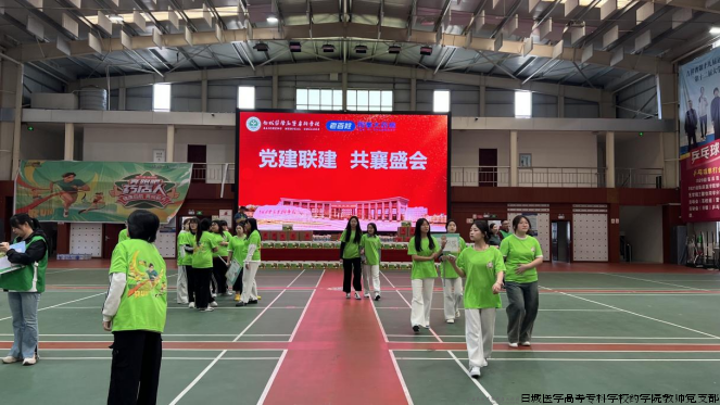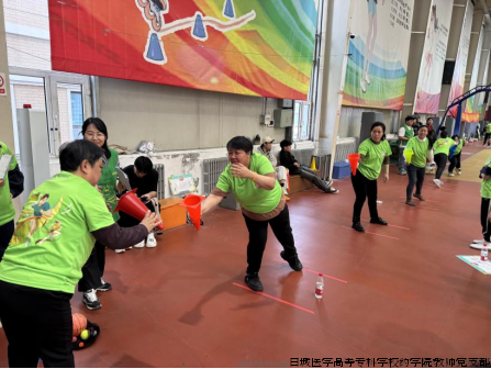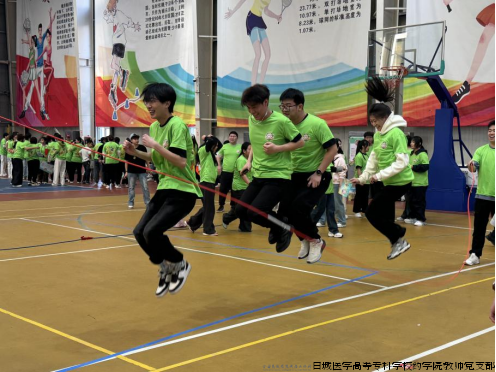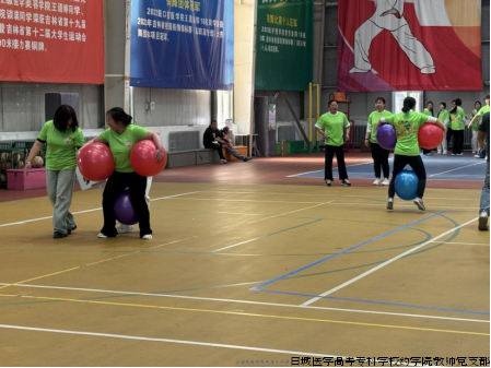 活动以趣味竞技为载体,巧妙融入了职业特性与团队协作精神。随后,30支参赛小组按照赛前分组有序开展竞赛,每支队伍由6名成员组成,药学院教工党支部党员教师自发与学生和企业组队通过团结协作完成六项趣味项目,与其他小组展开友好竞争。在“企鹅漫步”环节中要求选手以双臂抱球的姿态前行,爆破蛋队凭借出色的平衡力率先突破,展现了医专青年持之以恒的精神风貌。随后的“限时跳绳”环节,亦师亦友队她们步伐一致、动作协调,跳绳在空中划出连贯而优美的弧线,展现出坚韧不拔的毅力与永不言弃的精神。更具挑战性的“同心击鼓”协作比拼中,各团队动作流畅、配合默契,引发现场阵阵喝彩。赛事全程由专业裁判团队监督,分裁判负责计时与现场执裁,总裁判汇总成绩并评定名次,确保竞赛公平公正。
