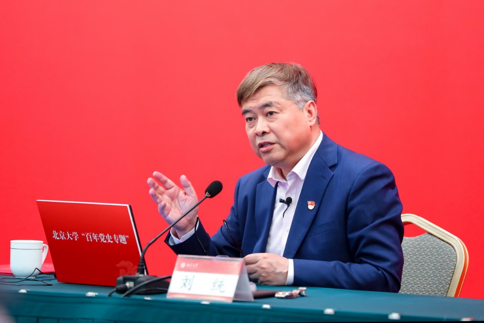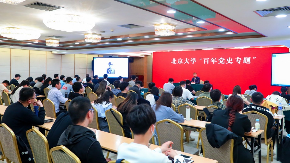 2021年5月11日晚,北京大学“百年党史专题”课程第五讲在英杰交流中心月光厅开讲。讲座以“为了新中国而奋斗”为主题,由上海交通大学历史系教授刘统主讲。北京大学常务副校长龚旗煌参加讲座。讲座由北京大学马克思主义学院王久高副教授主持。