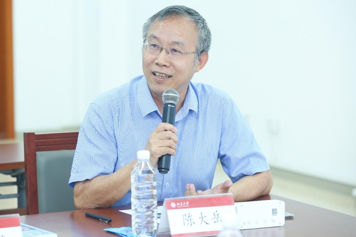 陈大岳强调,数学是科技创新的一种资源,是一种普遍适用的并赋予人以能力的技术。他希望数学学科能够与其他学科、其他行业有更多交叉合作,决策者应当经常想想工作中有没有数学问题需要请数学家来咨询,高等教育也应上好公共数学课,以提高学生数学素质,由此促进数学这种资源的开发和科技的创新。结合我国数学家应邀在国际数学家大会上作报告的数据,陈大岳提道,中国古代在数学上有很高成就,但没有传播到欧洲,我国当下仍努力从“数学大国”向“数学强国”迈进。他表示,北大数学长期致力于服务学术共同体,鄂维南、丁剑等在职教授荣膺多项具有重要影响力的科研奖励,始终站立在中国高等数学育人和科研的潮头,着力建设世界一流数学学科,为我国科技自立自强作出新的更大贡献。