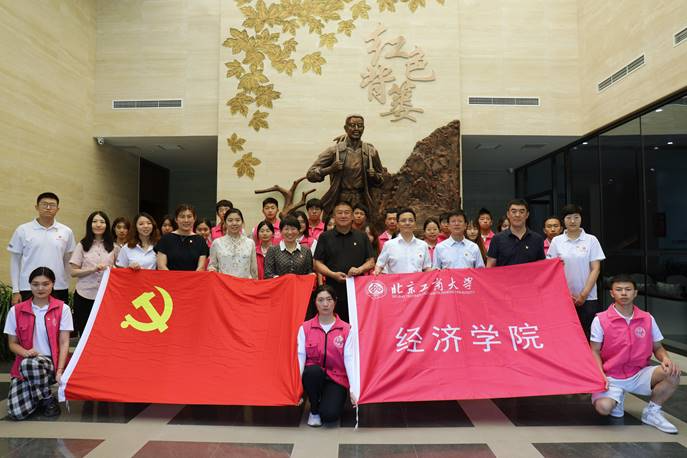为深入贯彻习近平新时代中国特色社会主义思想和党的二十大精神,牢牢把握“学思想、强党性、重实践、建新功”的主题教育总要求,2023年7月5日,北京工商大学经济学院学生党支部与周口店镇黄山店村党支部于黄山店村红色背篓精神纪念馆中举行共建签约及基地揭牌仪式。周口店镇党委书记杨叶辉、周口店镇党委副书记王广生、周口店镇党委委员、组织部部长、统战部部长、党群工作办公室主任齐欣、周口店镇黄山店村党支部书记张进刚,北京工商大学党委常委、党委宣传部部长兼经济学院院长倪国华、经济学院党委书记吕素香、经济学院党委副书记李艳春、团委书记路京明、办公室主任马腾、经济系教师代表叶青、崔怡、实践团带队教师李锦和学生成员出席了本次仪式。签约仪式由北京工商大学经济学院团委书记路京明主持。