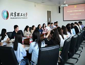 北京理工大学党委学生工作部副部长苟曼莉、干部王晓静、杨菲、辅导员高子淇及部分学生党支部书记、青年宣讲团成员参加交流。苟曼莉对我校一行表示热烈欢迎,盖晓庆介绍了我校“求实”班的情况并就此次调研学习的目的做了说明。
