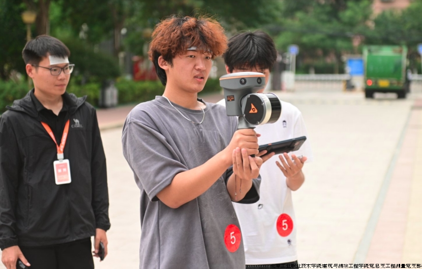 开幕式后三维智能测绘大赛开始,大赛共分内业、外业两个模块进行。外业竞赛内容为SLAM三维数据采集,参赛选手需要在规定的场地区域内,按照规定的范围完成原始数据的采集。比赛重点考察作业速度、操作规范、成果的完整性。