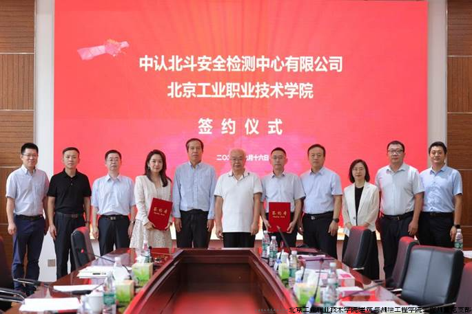 7月16日,北工院与中认北斗安全检测中心有限公司在我校举办北斗时空安全专题交流会,会上双方签署“北斗时空安全产教融合合作备忘录”,同步举行“北斗科普基地”授牌仪式,标志着“北斗时空+安全”产教融合项目进入实质性落地阶段。中国网络安全审查认证和市场监管大数据中心(CCRC)、中国卫星导航定位协会等单位领导及行业专家出席见证。