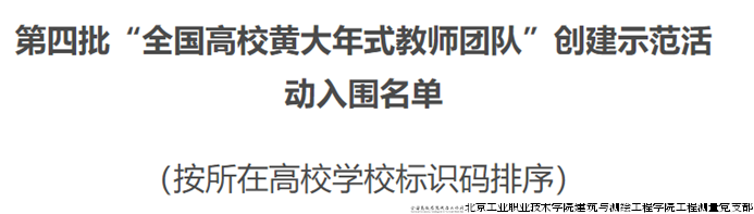 近日,教育部公布了第三批“全国高校黄大年式教师团队”认定名单和第四批创建示范活动入围名单。柳长安院长带领的“北斗时空信息应用技术教师团队” 成功入围第四批创建示范名单。北京工业职业技术学院机电工程学院张春芝教授带领的“智能设备技术教师团队” 成功入选第三批认定名单。