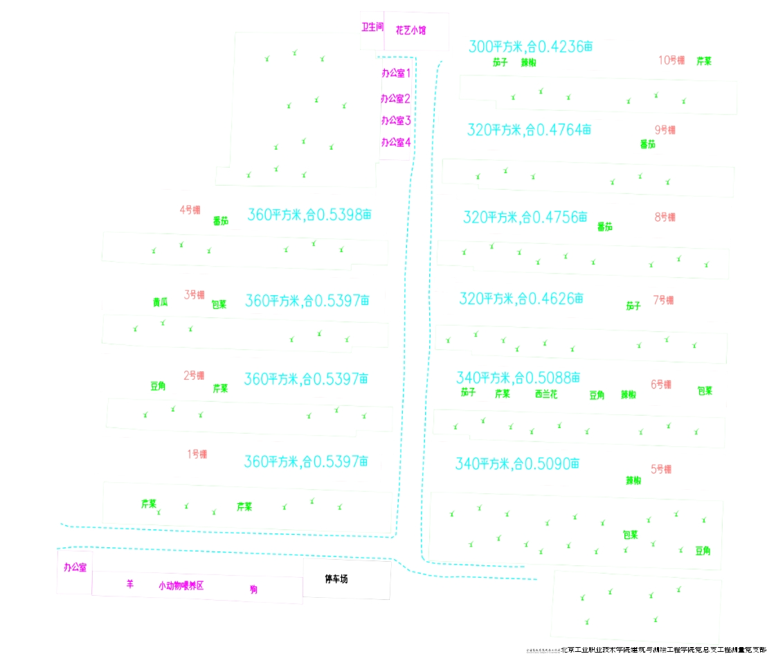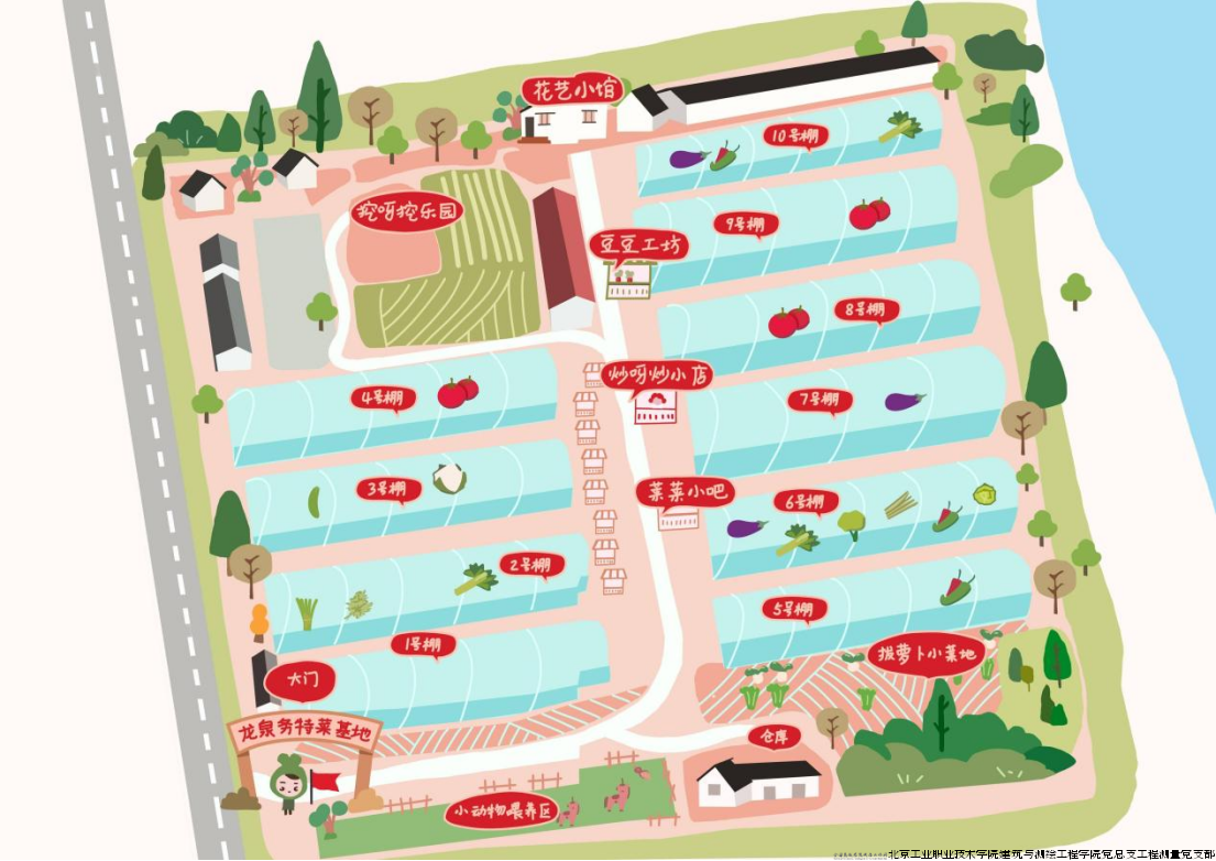 8月11日至8月20日,团队完成成果优化与宣传推广,包括对测绘数据进行精确校准和格式调整。将优化后的测绘数据通过CAD软件绘制详细图纸,涵盖农场边界、作物分布和设施位置,最终成功转化为精准的农场地图和卡通风格游客导览地图,这些地图设计生动有趣,便于游客导航和农场管理使用。