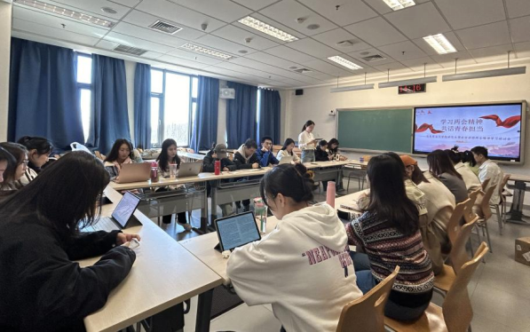同学们结合自身的学习和生活实际,分享了各自对两会精神的理解和感悟。大家关注到了诸多当前社会热点,如新质生产力、深化科技体制改革、美丽中国先行区等,提出了自己的理解和建议。在场同学表示,作为马克思主义学院的研究生,他们将持续努力学习党的创新理论,不断提高自己的政治素养,为实现中华民族伟大复兴的中国梦贡献力量。