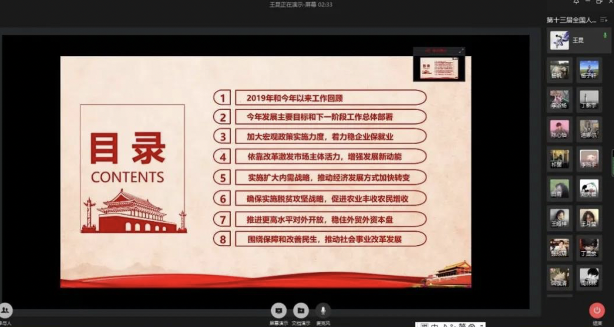 5月24日上午,文法学院本科生低年级党支部利用企业微信平台开展主题学习活动。本次活动围绕第十三届全国人民代表大会第三次会议开幕式及国务院总理李克强所作2020年政府工作报告开展线上主题学习会。
