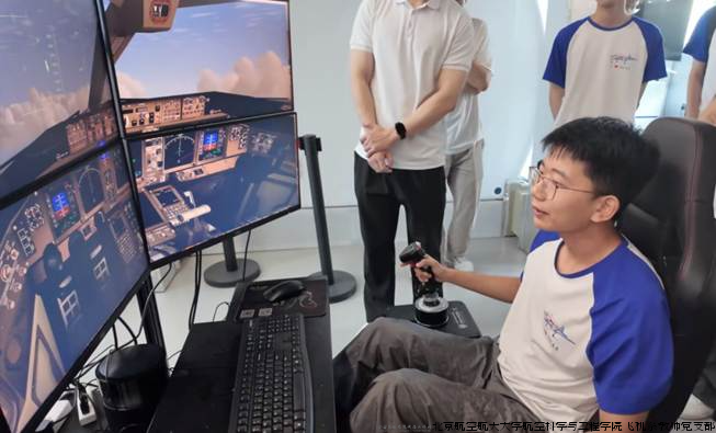 为了将理论更好地应用到实践上,天目山实验室的冯传宴副研究员为同学们介绍了天目山低空运行监管平台,讲解了该平台如何通过雷达对附近的低空飞行器进行识别与监测的原理,并指导同学们进行模拟飞行的体验,同学们亲自感受了飞机从起飞到巡航再到降落的全过程。