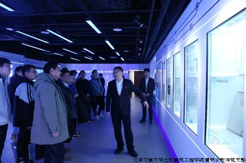 党支部共建活动分为两个环节,第一环节为参观鲁班商务公司展厅。鲁班商务公司党委书记耿守忠、总经理阴法强在展厅与我方人员进行了互动,并详细介绍了鲁班平台和集物平台的建设和运营情况。鲁班商务公司秉承“链接协同,共享共赢”的核心价值理念,按照“一体化、数字化、智能化、云应用化”的总体思路,融合互联网、大数据、区块链、人工智能、5G等新一代信息技术和数字技术,逐步优化完善集采管控、数字交易系统、智慧物流、数据服务核心系统,逐步建设基于中国中铁物贸业务、集中采购、成本管理的数字供应链产品生态圈逐步培育线上、线下深度融合、数据互联互通的服务生态圈,积极探索数字产业化的新业态、新模式,打造建筑业供应链数字科技领军企业。通过参观鲁班商务公司展厅,本科生同学们了解了数字化和智能化技术正在改变传统产业的运作方式,推动供应链效率提升和创新发展,为未来职业发展提供新的思路。