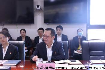 第二环节为座谈环节。首先,鲁班商务公司李福强介绍单位及党建工作情况,党支部积极拓展党建引领创新实践,深化“党建引领+”工作,锻造过硬的基层党支部,抓实抓细实践、文化、研发创新等重点任务,助力鲁班平台建设稳健发展,为中国中铁高质量发展贡献公司的“绿色”力量。接着,北京交通大学土建学院时瑾介绍土建学院情况,沈宇鹏介绍道铁系情况及“四融入”党建工作情况,支部坚持以高质量党建引领高质量发展,深入推动教育、科技、人才“三位一体”协同融合发展,以行动积极践行“交通强国,铁路‘先行’”的诺言。最后,双方就业务合作、人才培养、学生学业规划等内容进行了深入交流。