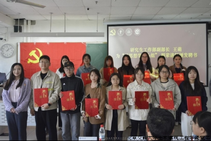 研究生工作部副部长王萌为习近平新时代中国特色社会主义思想学习小组的朋辈讲师颁发聘书,聘任来自马克思主义学院的优秀研究生代表担任讲师,为学院学生党建工作注入理论活力并提供有力支持。