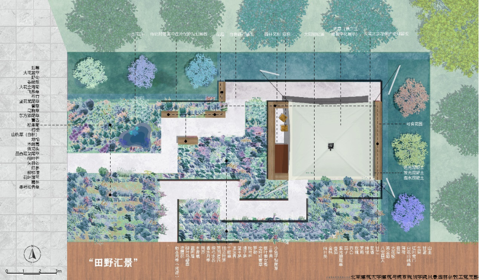 本次参展花园“田野汇景”由北建大建筑与城市规划学院风景园林系50多名师生联合设计建造,团队以全国党建工作样板支部风景园林系教工党支部为引领,以2个研究生党支部和1个本科生党支部为先锋模范带头,发动广大师生共同参与设计、建造、展示以及文化宣讲。