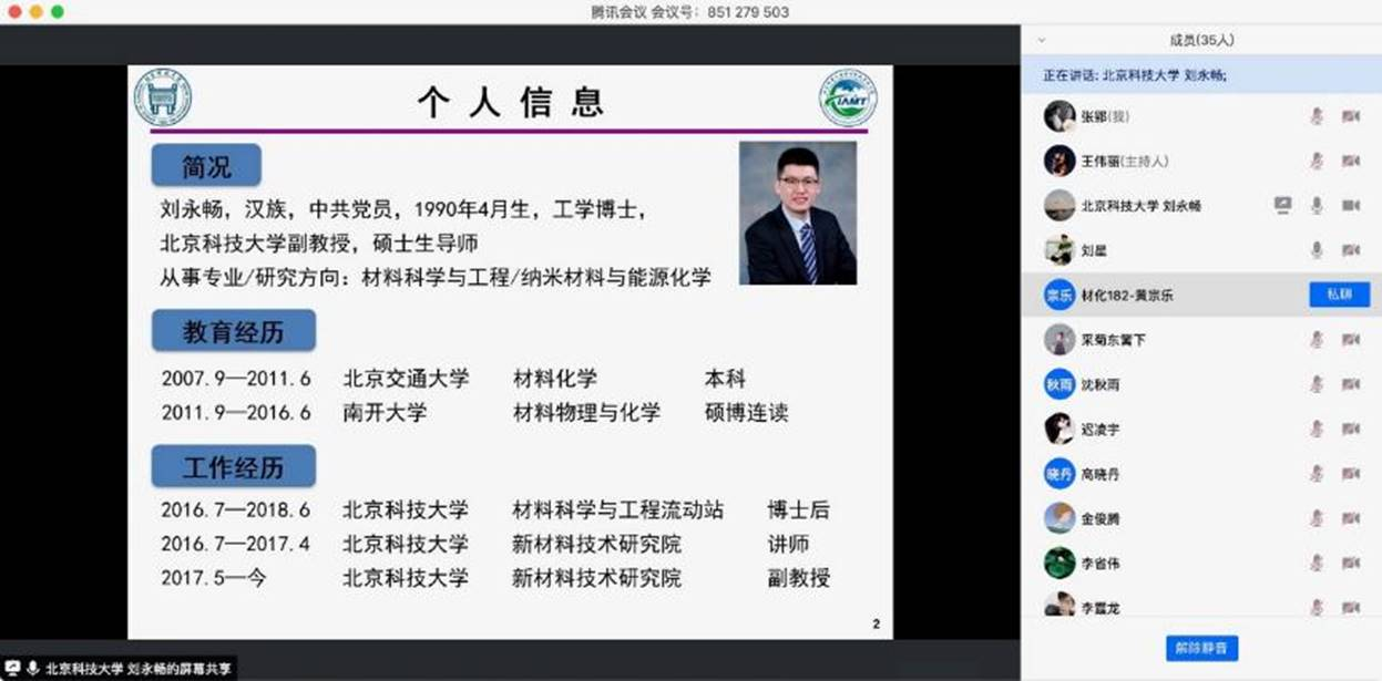 4月16日晚,北科大粉末冶金材料加工党支部的刘永畅副教授如约走进腾讯会议线上课堂,做客本科生系列学术沙龙“导师来了”第四期,为大家带来题为“坚持不懈·勤学不辍·以梦为马·不负韶华”的精彩分享,生动阐释了他的“材料中国梦”。