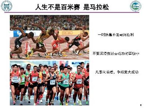 “人生不是百米赛,是马拉松。一时跑赢不是最终胜利,不要沉浸在过去成功的喜悦中,凡事向前看,争取更大成功!”