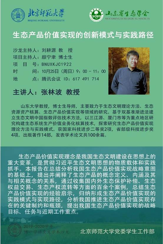 2019-2020学年博一学科交叉学术沙龙——生态产品价值实现的创新模式与实践路径