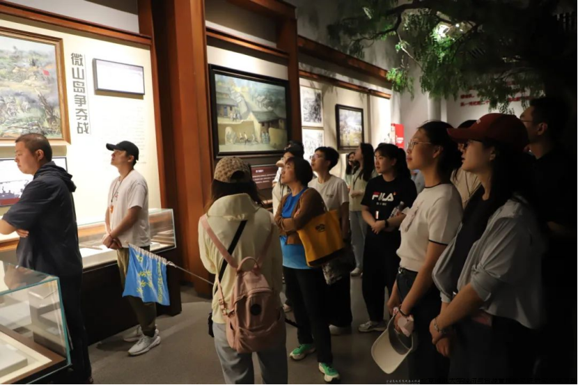 下午,师生前往微山岛参观铁道游击队纪念园。在讲解员的带领下,师生分别参观了纪念馆内的序厅、抗日烽火燃鲁南、沙沟受降载史册等七个展厅。通过实地参观,师生对铁道游击队、微湖大队、运河支队等抗日武装的英勇事迹有了更加生动全面的认识。