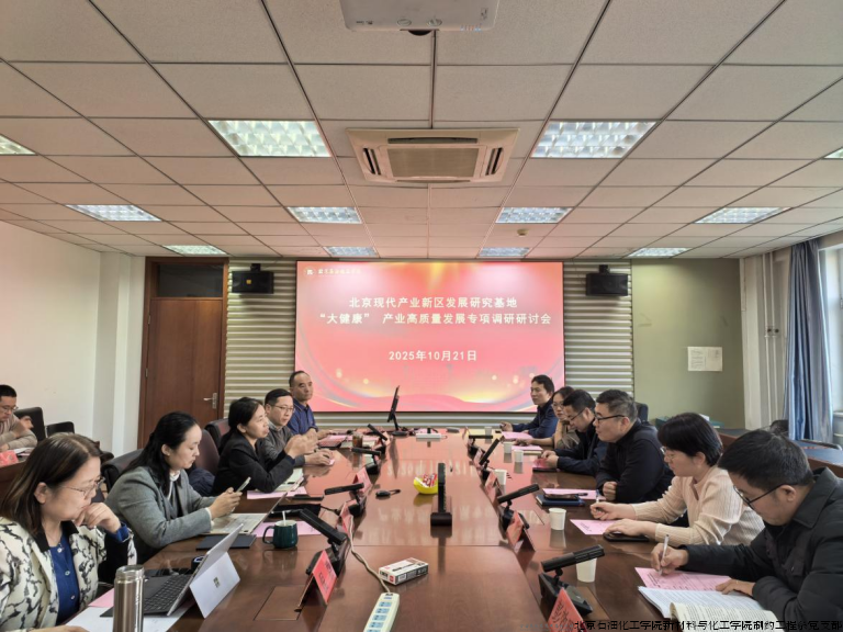 为进一步响应北京市 “大健康” 产业高质量发展号召,全力推进我校立足生物医药与大健康领域,聚焦产业民生推进研发创新与技术转化。2025 年 10 月 21 日,北京现代产业新区发展研究基地召开 “大健康” 产业高质量发展专项调研研讨会。科技处副处长王国洪教授;新材料与化工学院制药系党支部书记温振国教授协同8位科研团队的骨干党员;经管学院李海萍教授协同会计系、信息管理系、工商管理系、商务经济系等10位相关科研团队人员共同参会。