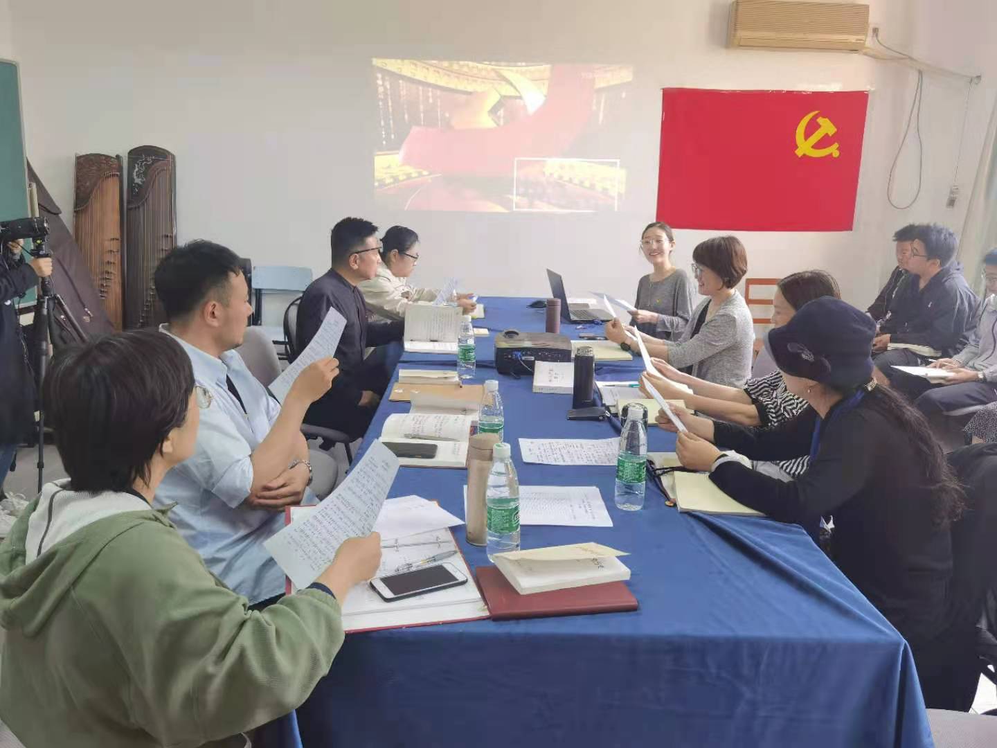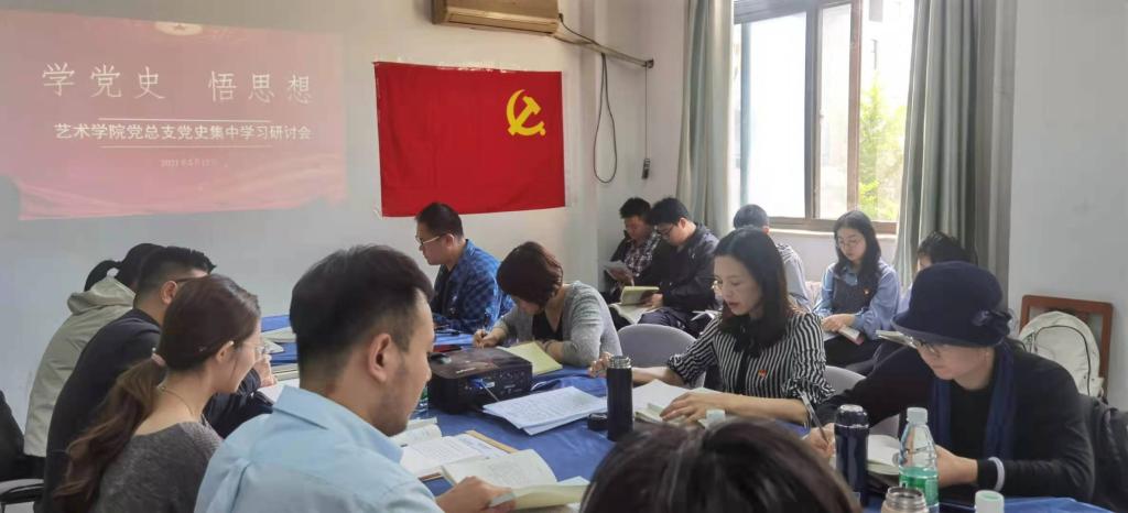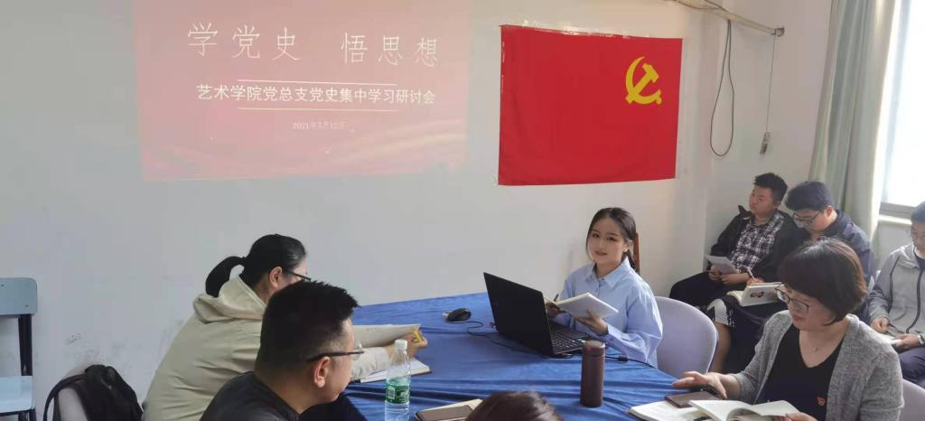 为切实开展好党史学习教育,艺术学院结合专业特色,从一幅画、一副字、一首歌、一支曲等艺术形式入手,通过打开画卷学党史、聆听名曲中的党史、学唱红歌等方式学党史、悟思想。5月12日,艺术学院党总支在主楼北446会议室举办“学党史,悟思想”党史集中学习研讨会,教师党员与学生党员以及入党积极分子、发展对象等20余人共同参加,就社会主义革命和建设时期的中国共产党历史进行学习和交流。