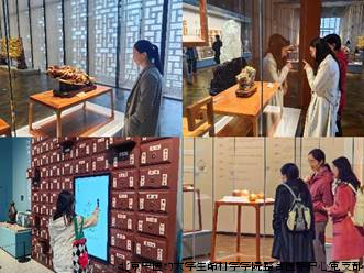 随后,博物馆中药部主任冯林敏老师带领大家参观三层的中药馆,其中矿物药、大型植物药材、九大仙草、中药炮制、外来中药等均为新开展区,老师们认真聆听介绍,共鉴馆藏,探秘中医药,通过闻香识药、中药饮片辨识等互动体验项目了解中药、认识中药、沉浸式体验中医药文化。