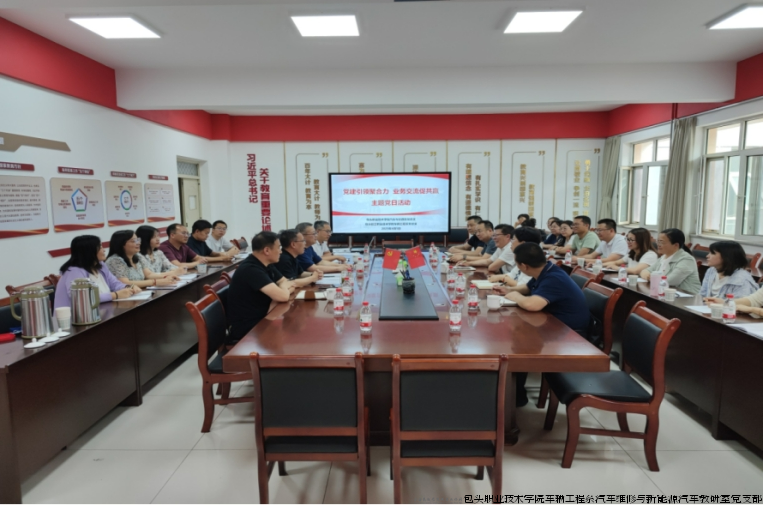 2025年6月5日下午,为探索党建与专业深度融合新路径,拓展我系办学育人新视野,包头职业技术学院汽车与交通系党总支与包头轻工职业技术学院车辆工程系党总支在我院联合开展主题党日活动。包头轻工职业技术学院党委委员、组织人事处处长胡明带领轻院车辆工程系党总支书记王瑞清及18名党员同志参加了活动,包头职业技术学院汽车与交通系党总支书记杨文忠、总支委员、党支部书记、科级干部、专业主任和部分党员出席。活动以“党建引领聚合力,业务交流促共赢”为主题,通过座谈研讨、实地参观等方式,共同探讨党建与专业建设新经验,谋划交通强国背景下高素质技术技能人才培养新篇章。