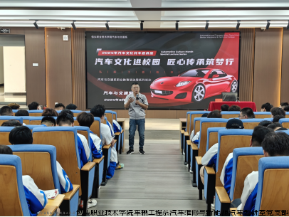 为拓宽学生专业视野,深化职业认知,在汽车文化月系列活动中,邀请资深专家赵广宏老师举办“汽车文化进校园,匠心传承筑梦行”专题讲座。赵广宏老师深耕汽车维修与售后服务领域32年,曾先后担任进口现代宝龙4S店技术总监、进口大众众瑞4S店技术总监、一汽奥迪庞大4S店技术总监,并长期作为包头交通广播汽车特邀嘉宾,在故障诊断、技术培训、行业咨询等领域积累了丰富经验。