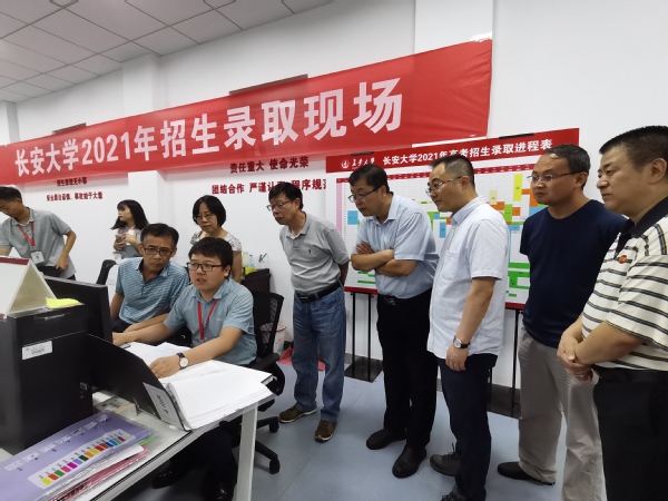 为了全面贯彻落实教育部“阳光高考”要求,进一步做好我校“公平、公正、公开”的招生录取工作,维护广大考生权益,接受监督,7月18日上午,长安大学招生就业处邀请校招生委员会部分成员、职能部门代表及教师代表,现场观摩长安大学2021年本科招生录取情况。