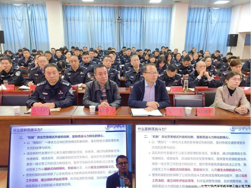解读新质生产力,协助开展干部作风能力提升大讲堂。10月24日下午,商南县公安局邀请长安大学汽车学院副院长牛世峰以《如何提升基层警察的新质战斗力》进行专题授课,举办第十五期干部作风能力提升大讲堂。县公安局党委副书记、政委白引红主持。商南县委常委、副县长马飞,长安大学汽车学院党委书记林贵宝出席并讲话。商南县公安机关200余人参加学习培训。
